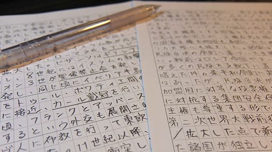 世界史用語をたくさん並べておけばいい点数になる、と思っていませんか?大間違いなんですけどね。設問をよく読んで、その問うところに答えなければ、答案として適切とは言えません。ですので、講義はまず設問について解説し、そのあと答案の添削をおこないます。受講者の数次第ですが、できるだけ多くの答案に触れたいと思っています。